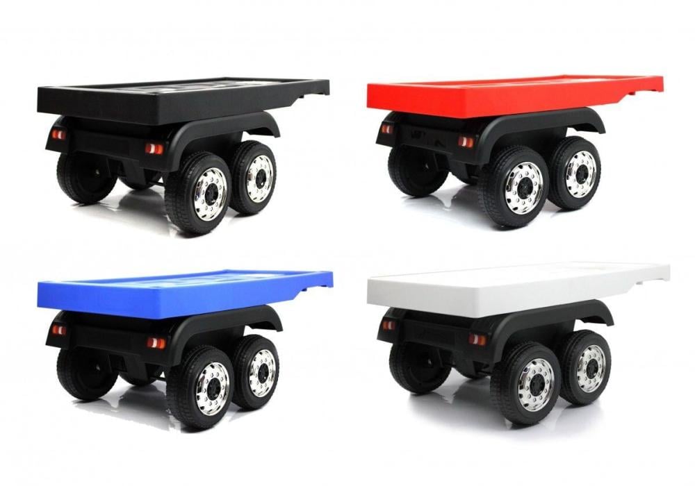 - الإطارات: عجلات بلاستيكية قوية، وقد تكون مزودة بإطارات EVA (إيثيلين فينيل أسيتات) لتحسين القيادة وتقليل الضوضاء. تتميز الشاحنة في الصورة بعجلات متعددة (غالباً ما تكون 6 عجلات في هذا التصميم، 4 منها للجر الخلفي).